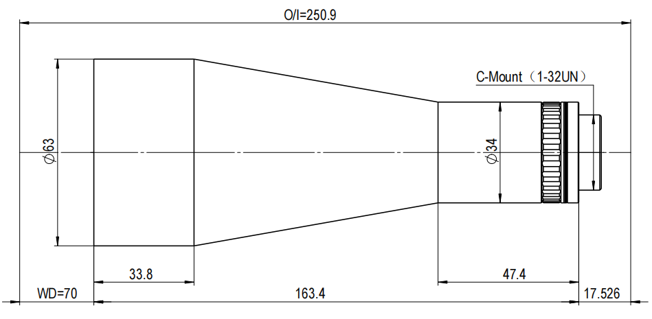 TTL06系列標準雙遠心鏡頭標準C接口,最大兼容1/3"(對角線6mm)靶面工業相機。